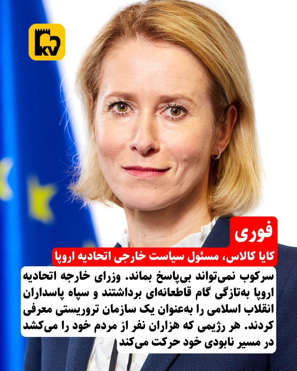 سرکوب نمیتواند بیپاسخ بماند. وزرای خارجه اتحادیه اروپا بهتازگی گام قاطعانهای برداشتند و سپاه پاسداران انقلاب اسلامی را بهعنوان یک سازمان تروریستی معرفی کردند. هر رژیمی که هزاران نفر از مردم خود را میکشد در مسیر نابودی خود حرکت میکند